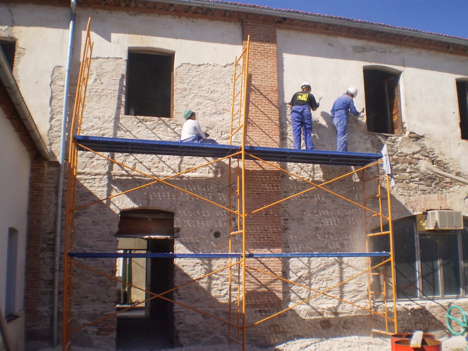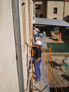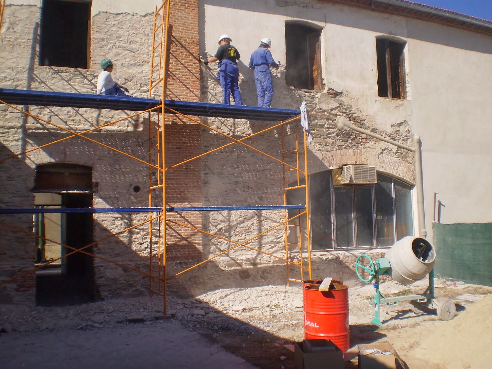 Todos sin excepción montaron y desmontaron el andamio y subieron al mismo para picar parte de la fachada, aunque no se vea en las fotos a todos.