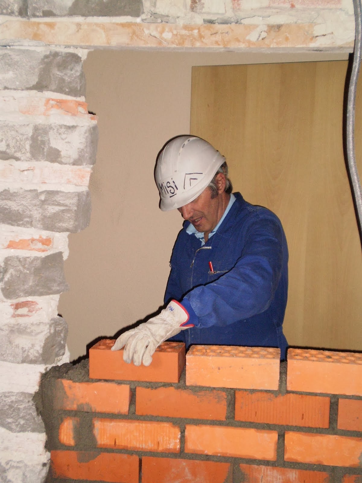Al quitar la puerta había que cerrar el hueco, encontramos una parte del muro que estaba ejecutado con hiladas de adobe y de ladrillo intercaladas, cerramos ese hueco con ladrillo cerámico y mortero de cemento.