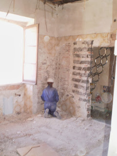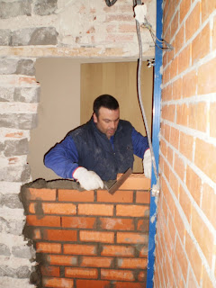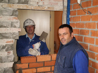 Entre nuestras tareas, cerramos un hueco que en su día comunicaba el ayuntamiento con un baño de una de las viviendas que existían.