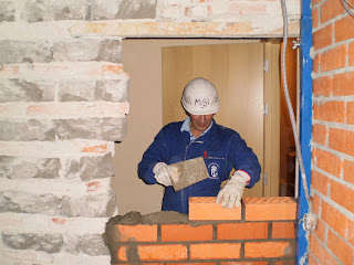 Se ve en esta sucesión de fotos cómo entre Cesar y Fernando realizaron el muro para cerrar el hueco.