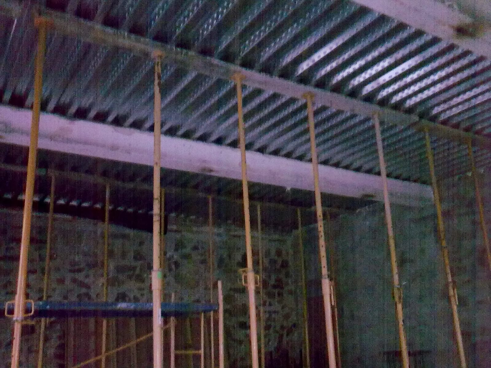 Hoy en la obra colocamos negativos sobre las vigas de hierro que se han puesto para reforzar las vigas de la estructura existente. se pasan niveles.