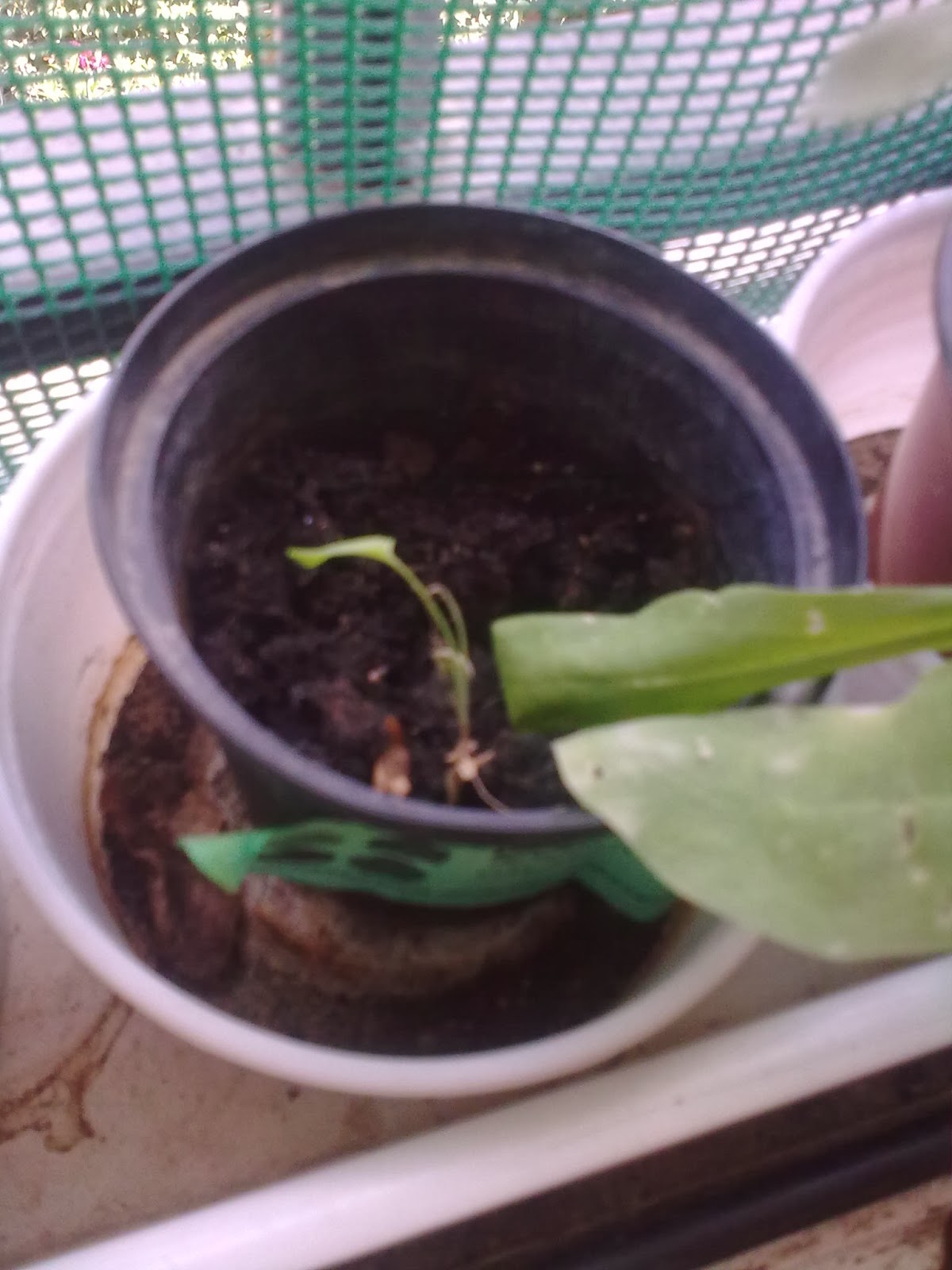 Bueno pues esta foto que os pongo ahora es una planta que ha salido en este tiestecillo y que no tengo ni idea de que es. Si progresa ya os diré.